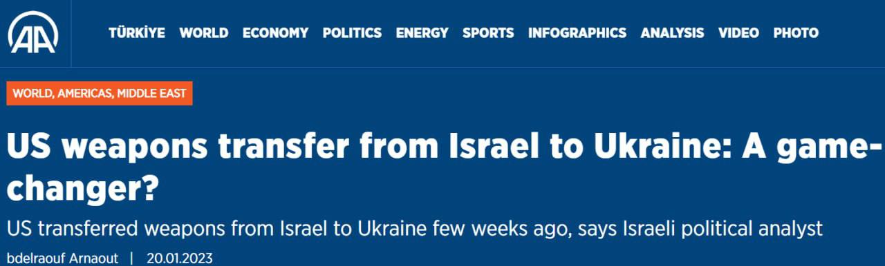 13:30 США кілька тижнів тому перекинули зброю з Ізраїлю в Україну, повідомляє турецьке агентство Anadolu з посиланням на слова джерела.