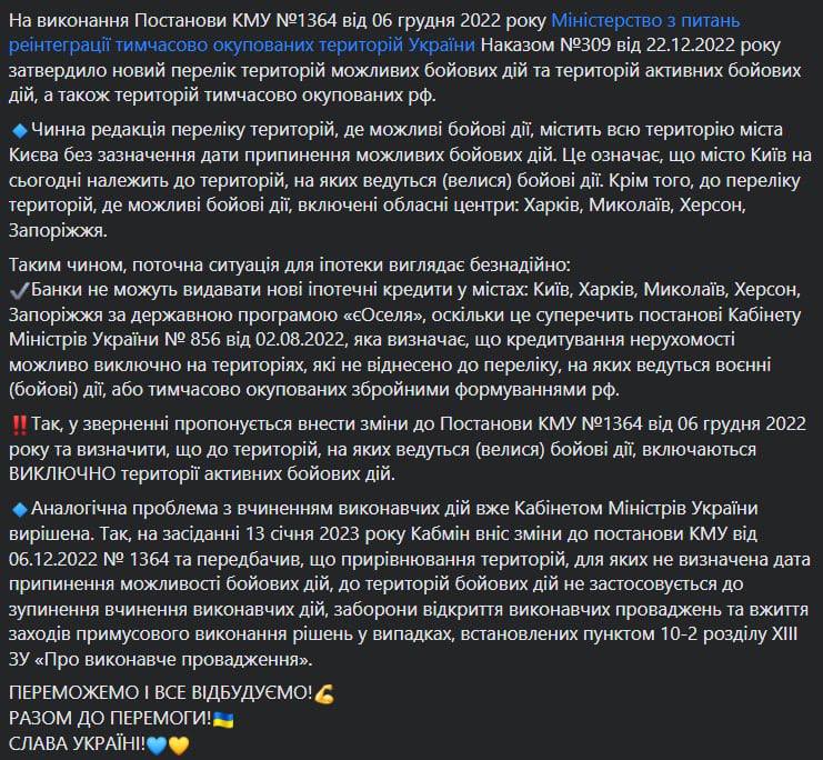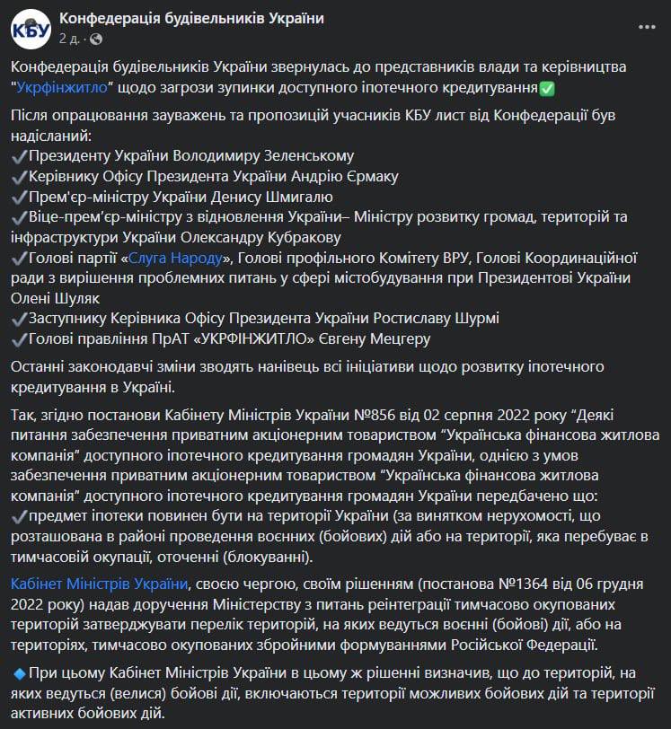 Раніше Конфедерація будівельників України заявила, що у зонах "можливих бойових дій" діють обмеження щодо кредитування. Знаходження Києва у цьому списку не дозволяло банкам здійснювати іпотечне кредитування у столиці.