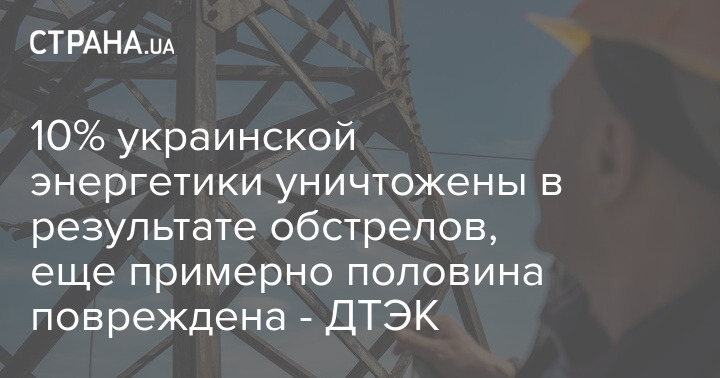 10% української енергетики знищено внаслідок обстрілів, ще приблизно половину пошкоджено - ДТЕК