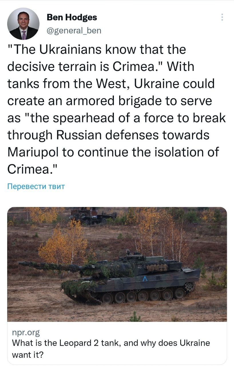 08.55 Із західними танками Україна могла б створити бронетанкову бригаду для прориву російської оборони у напрямку Маріуполя.