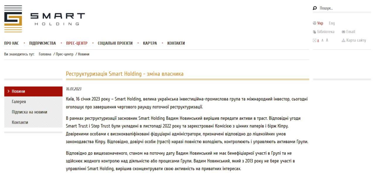 Зазначимо, що станом минулого року Новинський через Smart Holding володів понад 23% акцій найбільшого металургійного холдингу України «Метінвест».