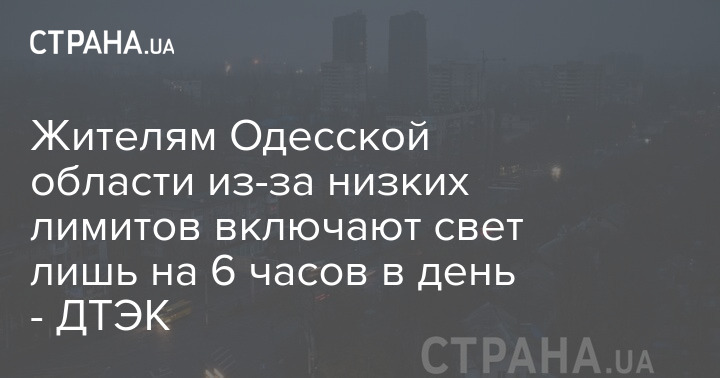 Жителям Одеської області через низькі ліміти включають світло лише на 6 годин на день - ДТЕК
