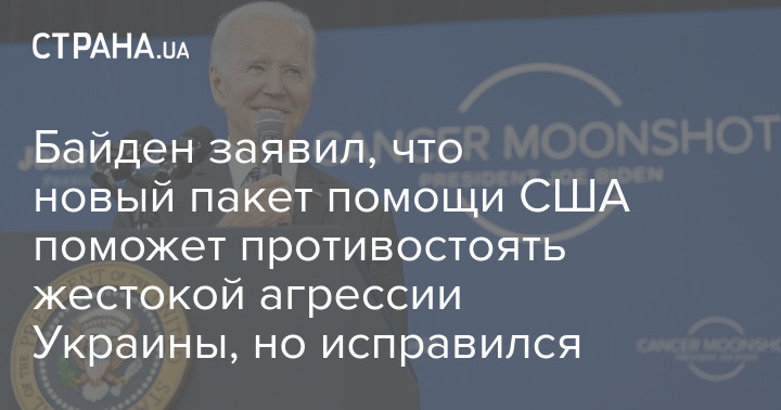 Байден заявив, що новий пакет допомоги США допоможе протистояти жорстокій агресії України, але виправився