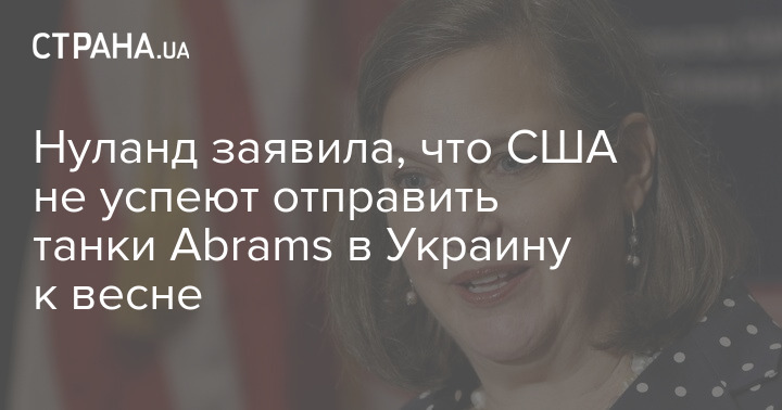"Abrams, як ви знаєте, є дуже складним танком і вимагає значної підготовки. Незважаючи на те, що ми їх схвалили вчора, буде потрібно деякий час на те, щоб доставити їх на поле бою. Вони не з'являться там до весняного наступу", - заявила Нуланд.