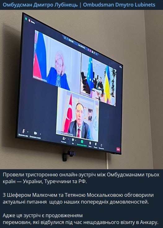 Російський омбудсмен Тетяна Москалькова заявляє, що "домовлялися про сприяння в обміні списками тяжко поранених, які підлягають репатріації, надання допомоги компетентним органам у поверненні громадян, які підлягають депортації".