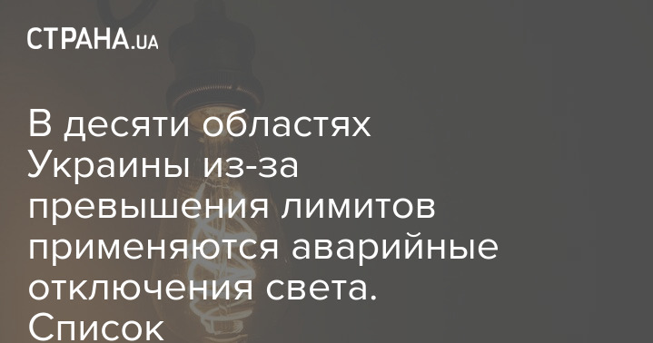 У десяти областях України через перевищення лімітів застосовуються аварійні відключення світла. Список