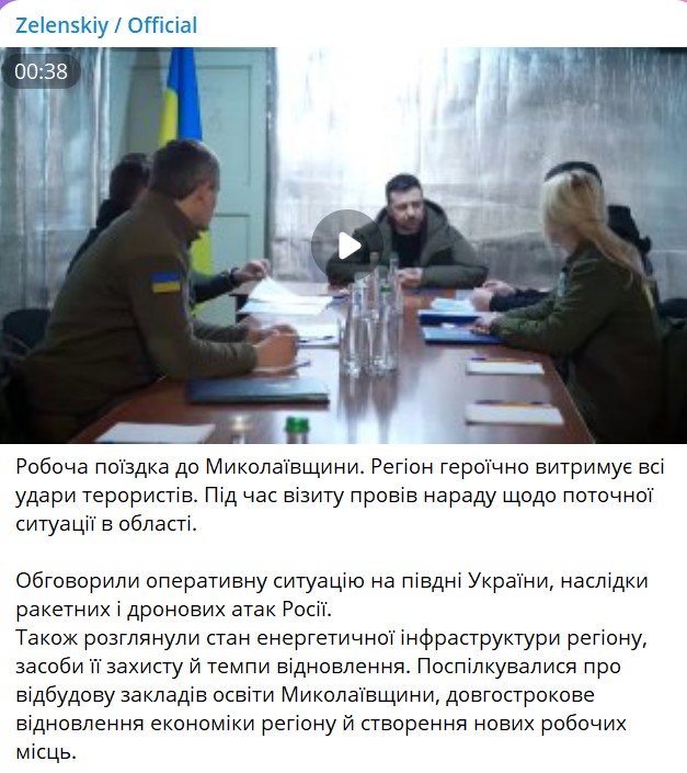Сам Зеленський вже написав у своєму телеграм-каналі про відвідини Миколаївської області.