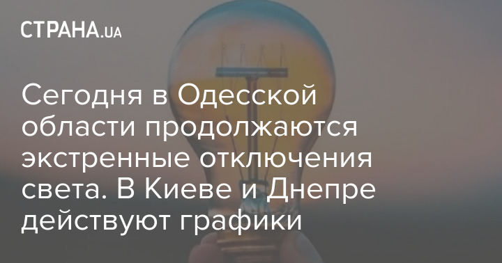 Сьогодні на Одещині тривають екстрені відключення світла. У Києві та Дніпрі діють графіки