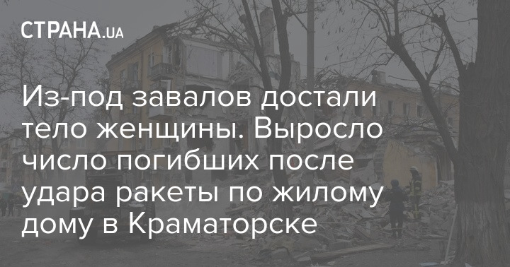 З-під завалів житлового будинку в Краматорську, яким ударила російська ракета, дістали тіло загиблої жінки.