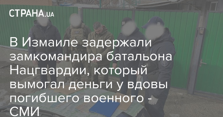 В Ізмаїлі на Одещині затримали заступника командира батальйону Нацгвардії. Він вимагав 10% (близько мільйона гривень) від гарантованих державою виплат у вдови військового, який загинув у Маріуполі.