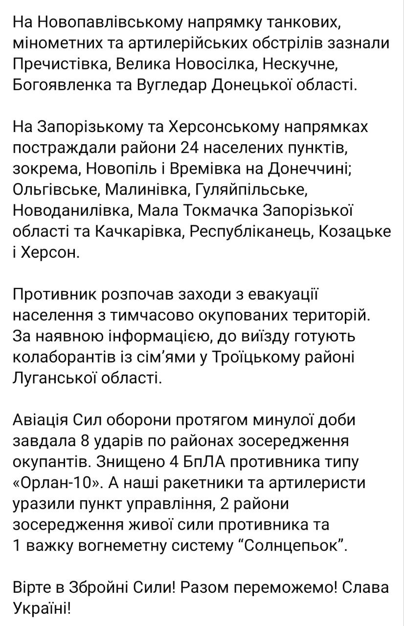 1. Росіяни продовжують наступ на Лиманському, Бахмутському, Авдіївському та Новопавлівському (Вугледар) напрямках. Зазнають великих втрат.