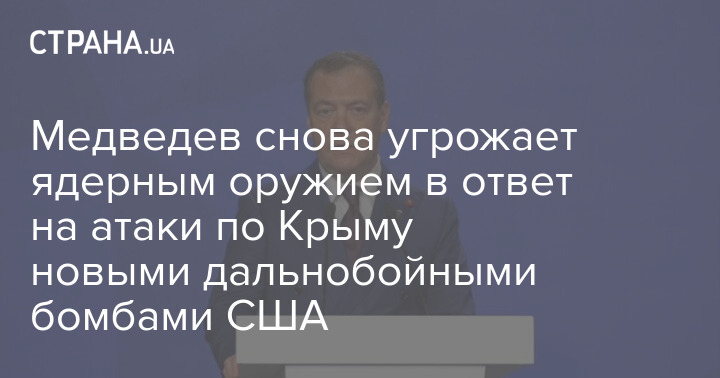 Заступник голови Ради безпеки РФ Дмитро Медведєв пригрозив "ударами відплати" у разі ударів по Криму новими далекобійними бомбами, які США нададуть Україні.