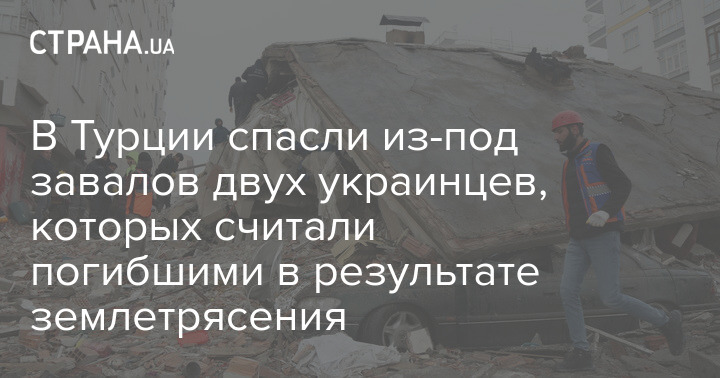Двоє громадян України, яких вважали загиблими внаслідок землетрусу в Туреччині, врятовано.