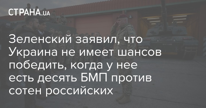 "Коли ми маємо десять БПМ НАТО проти сотень російських БМП - які можуть бути шанси", - сказав Зеленський.