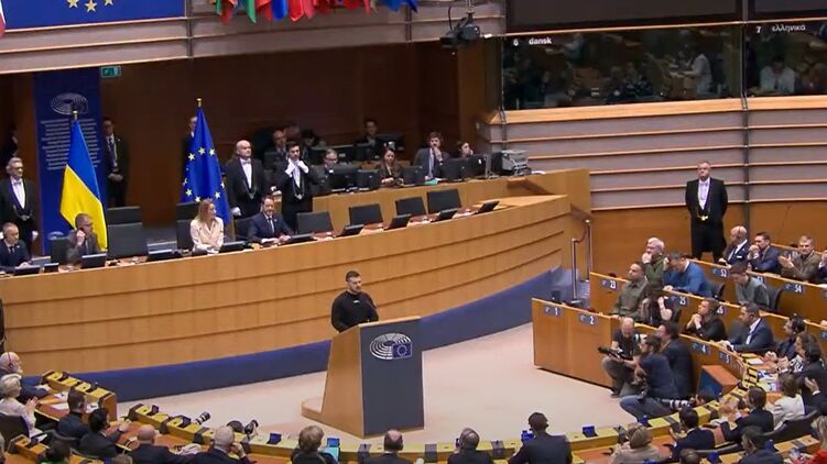 Президент України Володимир Зеленський, який перебуває з візитом у Брюсселі, 9 лютого виступив у Європейському парламенті.