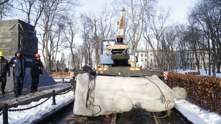 У четвер, 9 лютого, у Києві демонтували пам'ятник радянському генералу Ватутіну, який було встановлено у Маріїнському парку.
