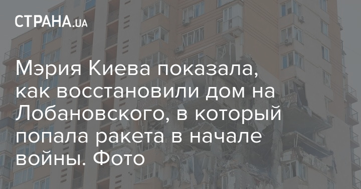 Радник мера Києва Дмитро Білоцерковець у себе на сторінці у Facebook опублікував фото відновленого будинку на проспекті Лобановського у Києві, в який на початку війни потрапила ракета.