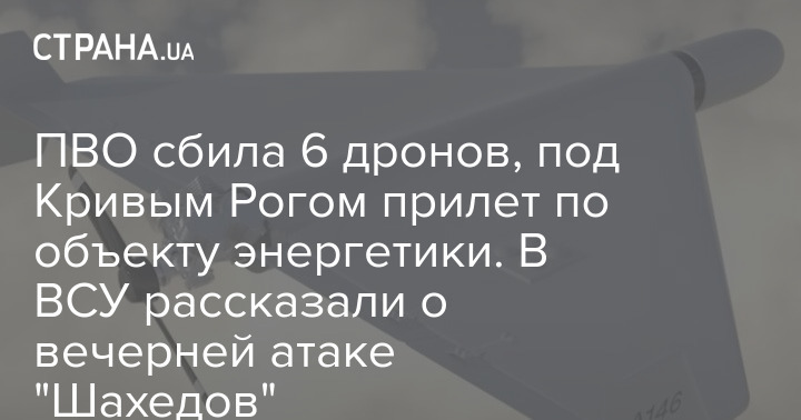ППО збила 6 дронів, під Кривим Рогом приліт по об'єкту енергетики. У ЗСУ розповіли про вечірню атаку "Шахедів"