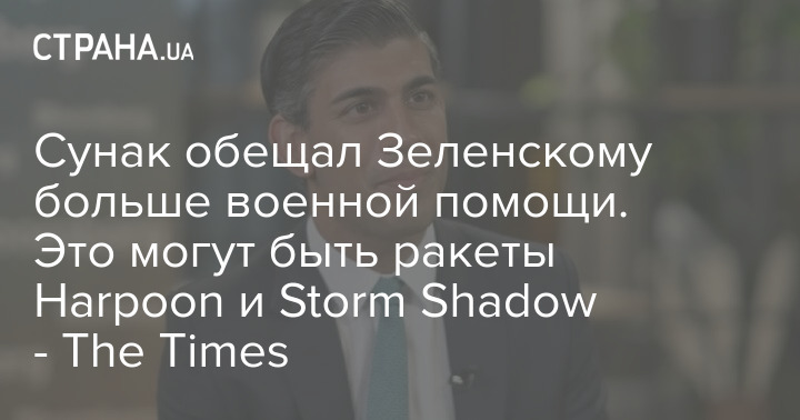 Прем'єр-міністр Великобританії Ріші Сунак пообіцяв президентові України Володимиру Зеленському надати більше військової допомоги. Конкретики поки що не було, але видання The Times припускає, що це можуть бути протикорабельні ракети Harpoon та ракети класу "повітря - земля" Storm Shadow.