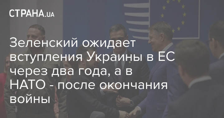Президент України Володимир Зеленський заявив, що розраховує на вступ України до ЄС через два роки, а в НАТО після закінчення війни.