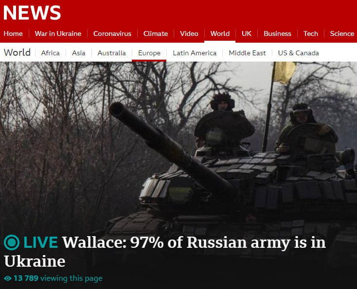 "Потенційно їхня боєздатність знижена на 40%, а майже дві третини танків знищені або розбиті, це має прямий вплив на безпеку Європи", - заявив Уоллес.