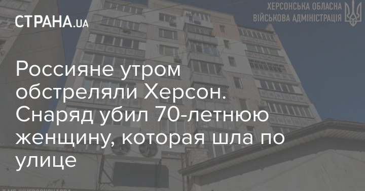 У четвер вранці росіяни обстріляли Херсон, внаслідок чого загинула 70-річна місцева мешканка.
