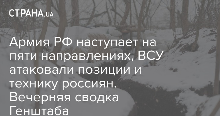 Армія РФ наступає на п'яти напрямках, ЗСУ атакували позиції та техніку росіян. Вечірнє зведення Генштабу