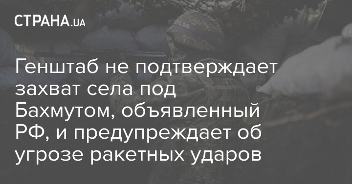 Генштаб не підтверджує захоплення села під Бахмутом, оголошене РФ, і попереджає про загрозу ракетних ударів