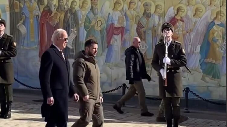 Також з'явилося відео, як увімкнули сирену повітряної тривоги, коли Байден та Зеленський вийшли з Михайлівського собору.