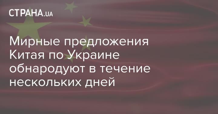 Мирні пропозиції Китаю щодо України будуть оприлюднені протягом кількох днів.