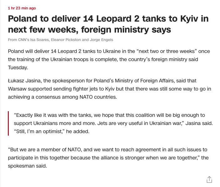 Також повідомляється, що Лукаш Ясіна, прес-секретар МЗС Польщі, заявив: Варшава підтримує відправку винищувачів до Києва, але ще має пройти певний шлях для досягнення консенсусу між країнами НАТО.