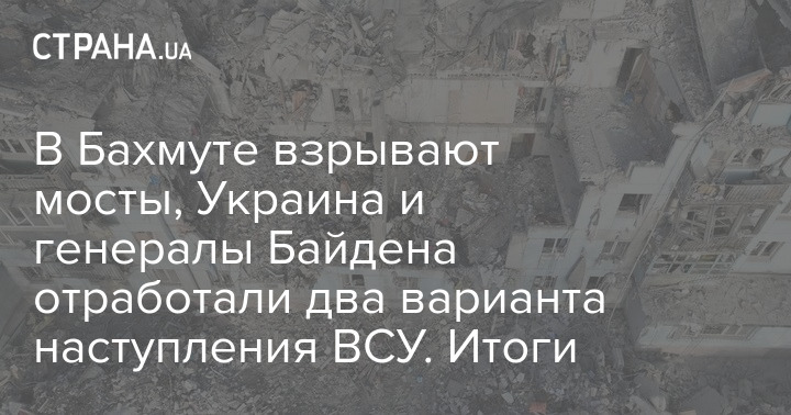 А ось журналіст Bild Юліан Рьопке, який аналізує бої в Бахмуті, пише, що мости в західній частині міста підривають ЗСУ, а не російські війська. На його думку, це знаменує зміну стратегії української оборони та підготовку до виходу з міста.