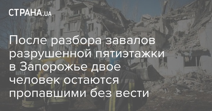 Після завершення розбору завалів зруйнованої внаслідок обстрілу п'ятиповерхівки у Запоріжжі двоє людей залишаються безвісти зниклими.