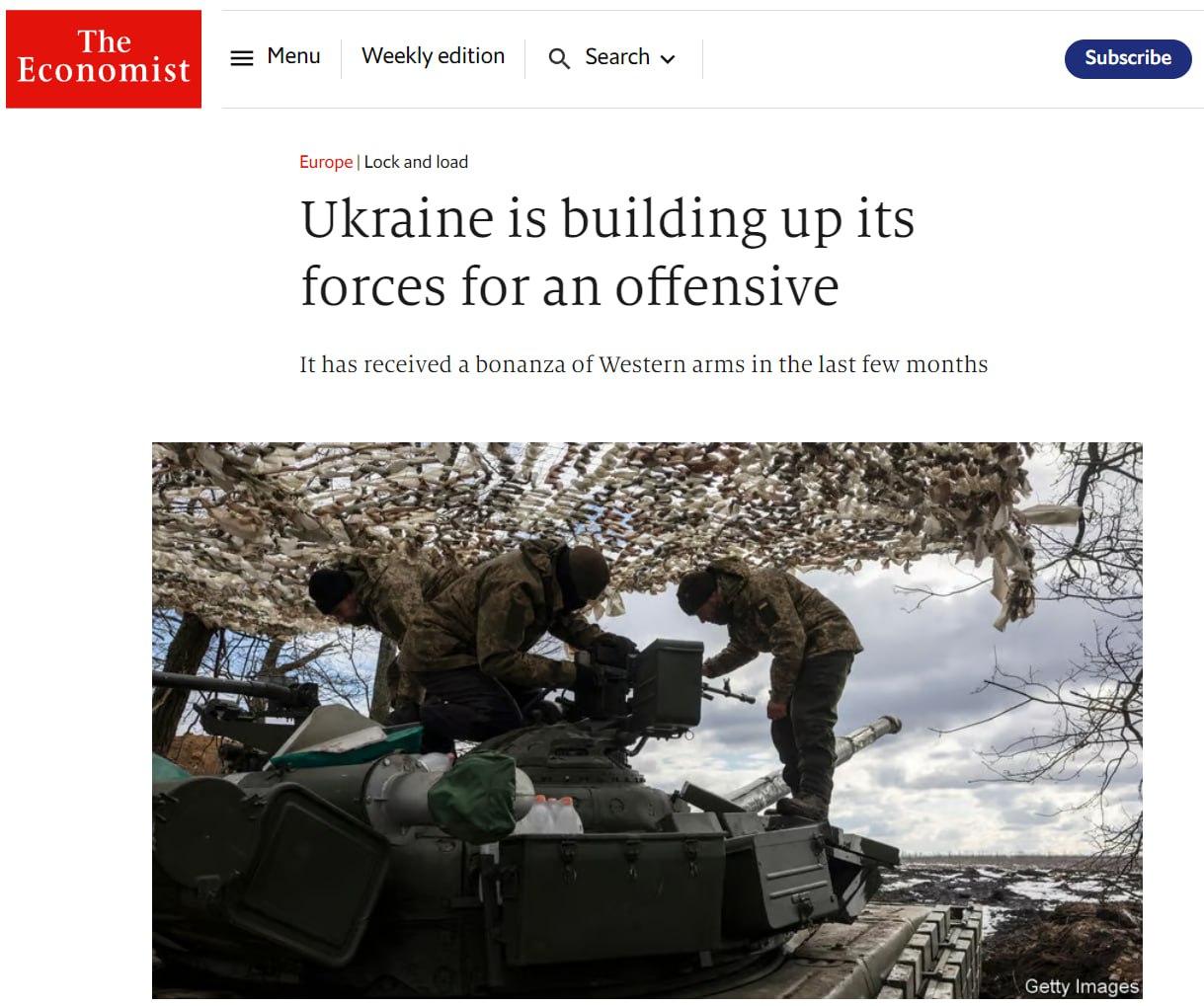 "У той час як уся увага зараз прикута до битви за східне місто Бахмут, увага незабаром буде звернена на очікуваний контрнаступ, який може розпочатися вже у квітні", - йдеться у матеріалі.