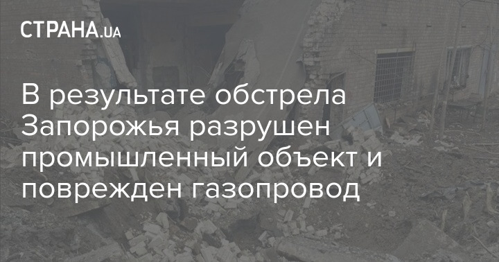 Внаслідок обстрілу Запоріжжя зруйновано промисловий об'єкт та пошкоджено газопровід