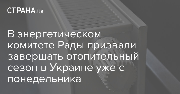 Завершувати опалювальний сезон в Україні з понеділка наступного тижня закликав голова енергетичного комітету Ради Андрій Герус.