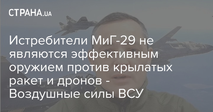 Винищувачі МіГ-29 не є ефективною зброєю проти крилатих ракет і дронів - Повітряні сили ЗСУ
