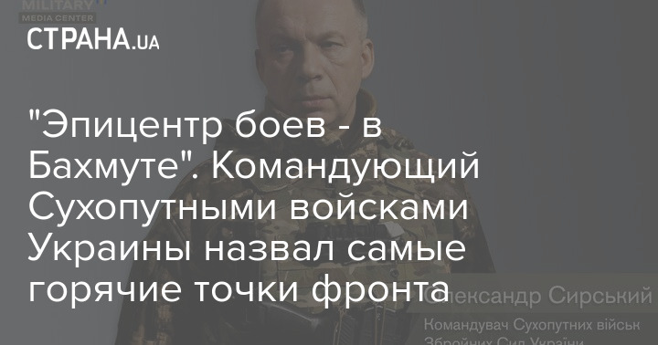 "Фактично по всій східній лінії фронту ворог проводить наступальні дії, намагаючись прорвати оборону наших військ і просунутися в глибину їхніх бойових порядків. Найбільш запеклі бої продовжуються в районах Кремінної, Торського, Білогорівки, Спірного. Втім, епіцентром бойових дій залишається Бахмут. Бої за місто продовжуються", – сказав Сирський.
