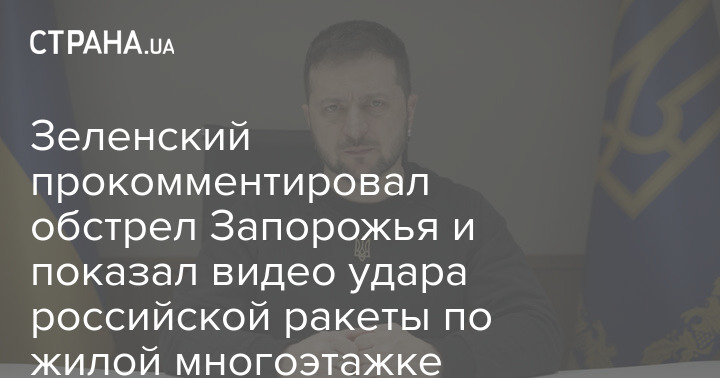 Зеленський прокоментував обстріл Запоріжжя та показав відео удару російської ракети по житловій багатоповерхівці