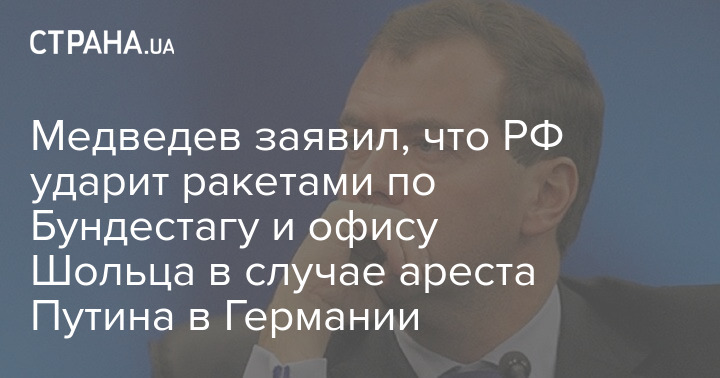Заступник голови Ради безпеки Росії Дмитро Медведєв заявив про ракетний удар по Бундестагу та офісу канцлера Німеччини, якщо президента РФ Володимира Путіна заарештують.