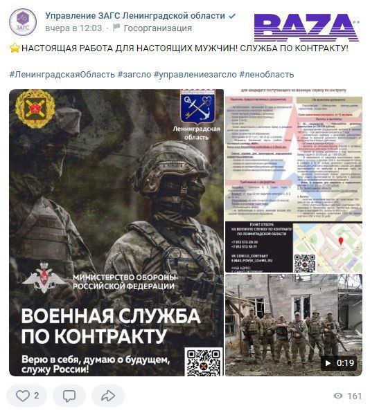 Вони обрамлені в камуфляжну "форму", з прапорами Росії. Великий напис пропонує перейти на сайт, де розповідається все про контрактну службу в ВС РФ.