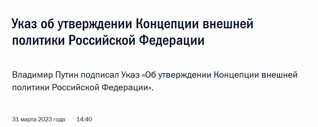 Президент Росії Володимир Путін затвердив нову концепцію зовнішньої політики Росії. Про підписання указу він оголосив на нараді Радбезу РФ.