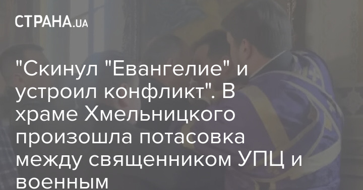 У телеграм-каналах поширюються кадри, як в одній із церков УПЦ у Хмельницькому люди за участю священика скручують людину у військовій формі та викликають поліцію.