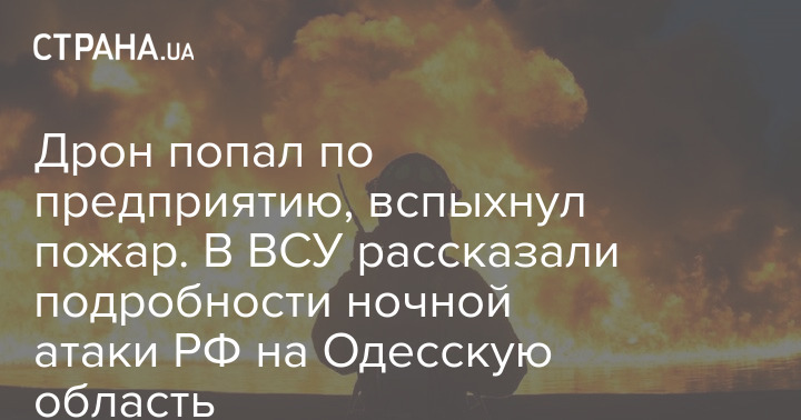 Дрон влучив по підприємству, спалахнула пожежа. У ЗСУ розповіли подробиці нічної атаки РФ на Одеську область