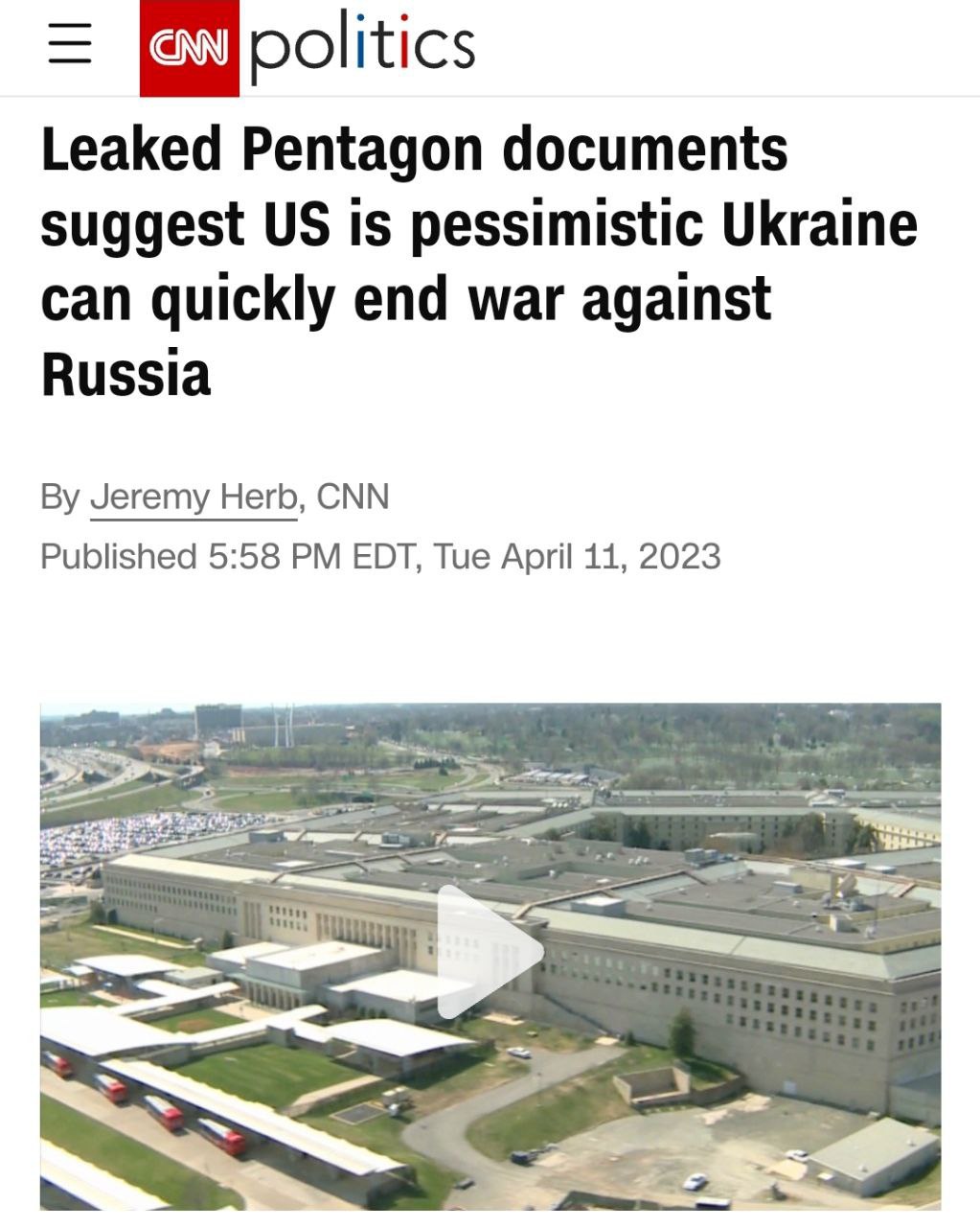 Такі висновки телеканал робить із витоків Пентагону. "Вони підкреслюють слабкі сторони українського озброєння та ППО і передбачають тупикову ситуацію у війні на найближчі місяці", - йдеться у статті.