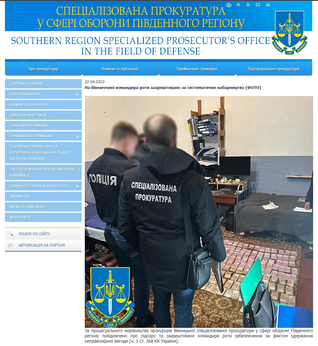 11.56 Командир роти на Вінниччині давав відпустки підлеглим за хабарі, його спіймали на одержанні грошей.