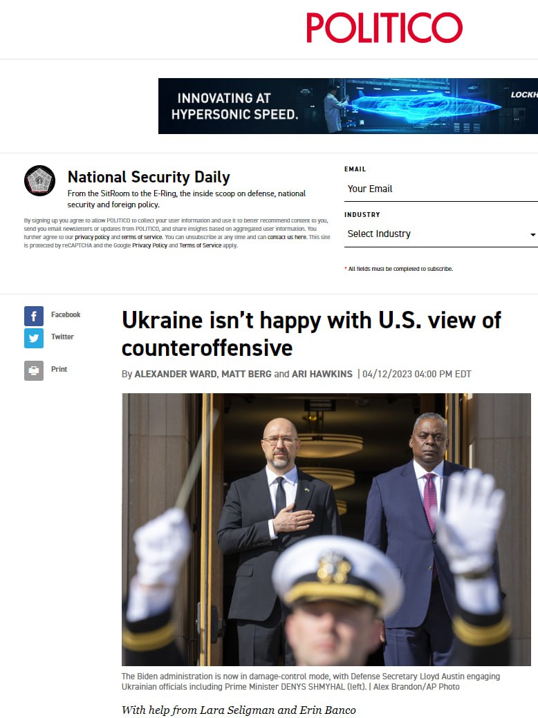 "Коментарі ясно дають зрозуміти, що Сполучені Штати та Україна не такі синхронізовані, як заявляють обидві країни через 14 місяців після початку війни", - пише Politico.