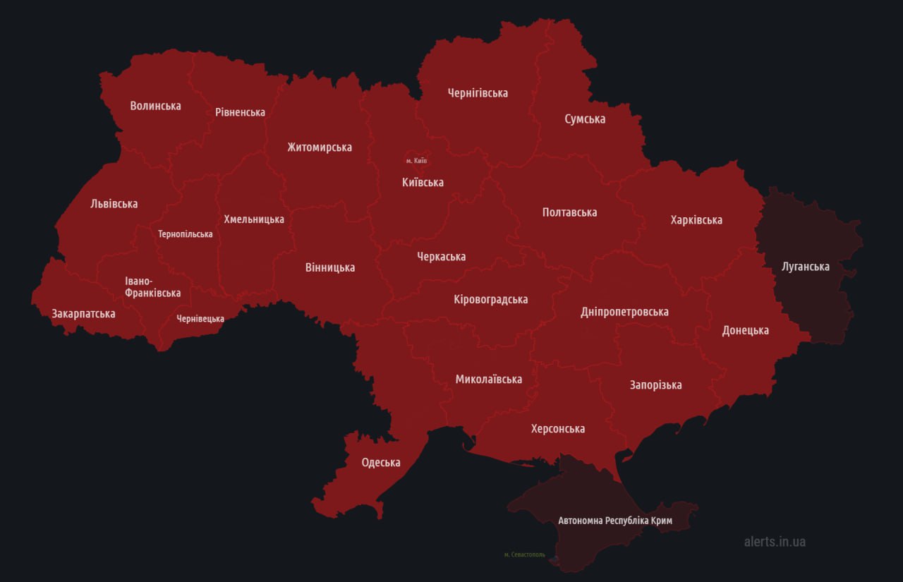 11.36 Повітряну тривогу оголошено по всій Україні.