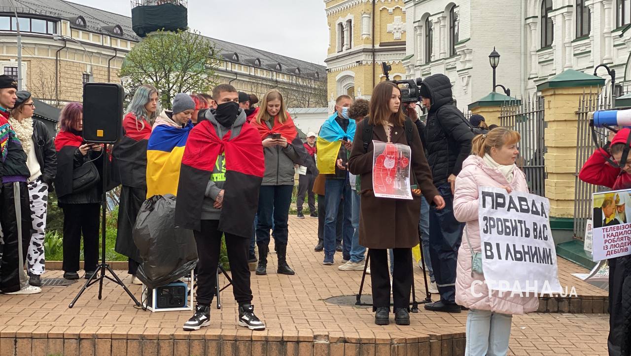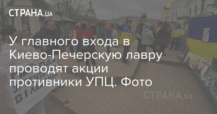 Біля головного входу до Києво-Печерської лаври у четвер, 13 квітня, проводять акції противники Української православної церкви з вимогами виселити ченців УПЦ із Лаври.