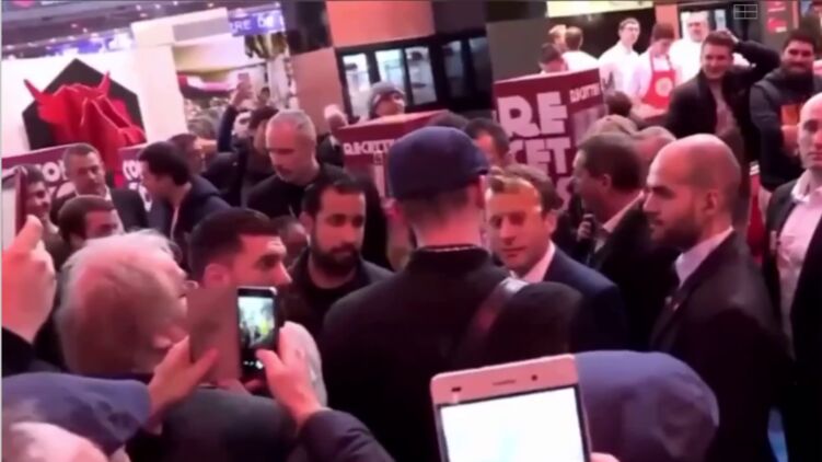 Яйце прилетіло президентові Франції просто на думку. Скріншот відео
